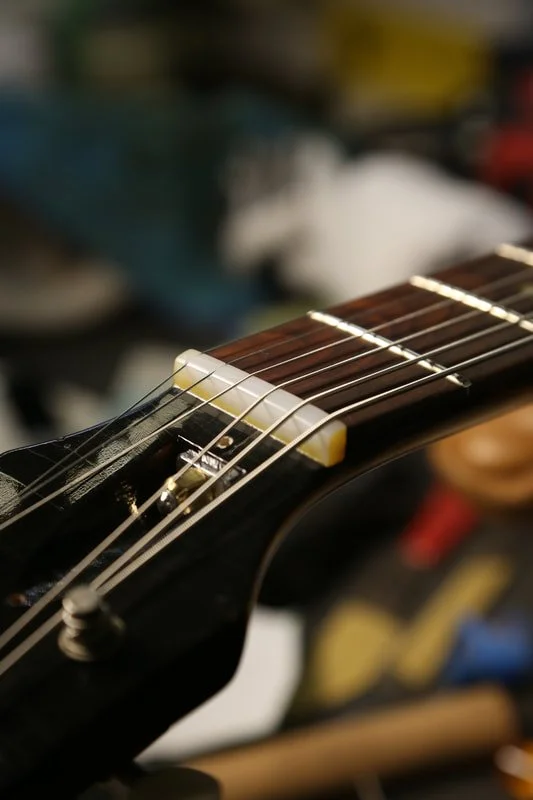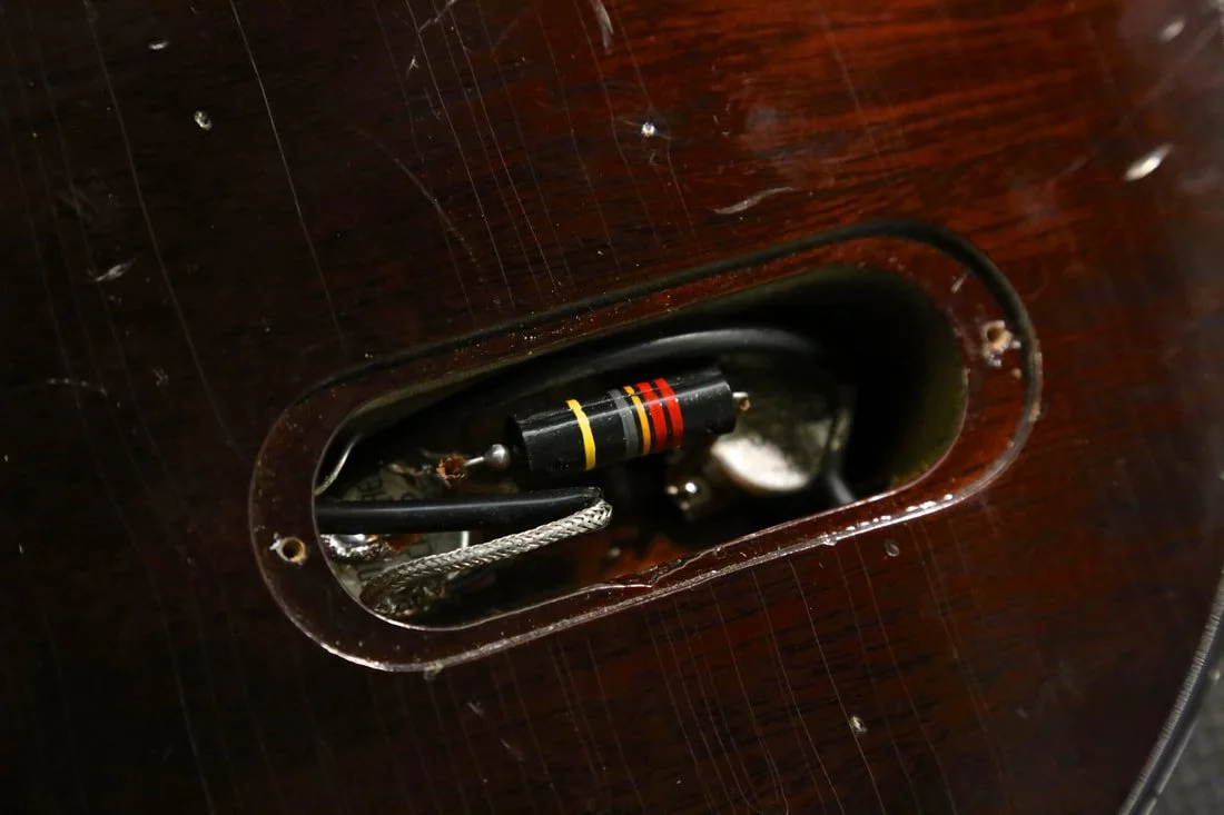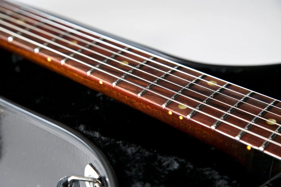 -Period correct nylon 6/6 nut (Nut radius and surrounding frets are working away from a 16" radius to facilitate slide playing)